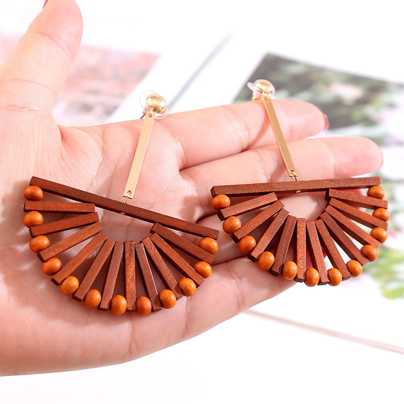 Product information: Color: square long wood earrings, round hollow wood earrings Inlaid material: unset Image: Wooden Series: autumn and winter
