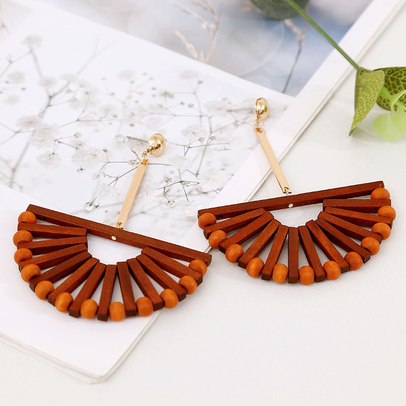 European And American Fashion New Retro Style Wooden Earrings Long Wooden Tassel Multi-layer Earrings